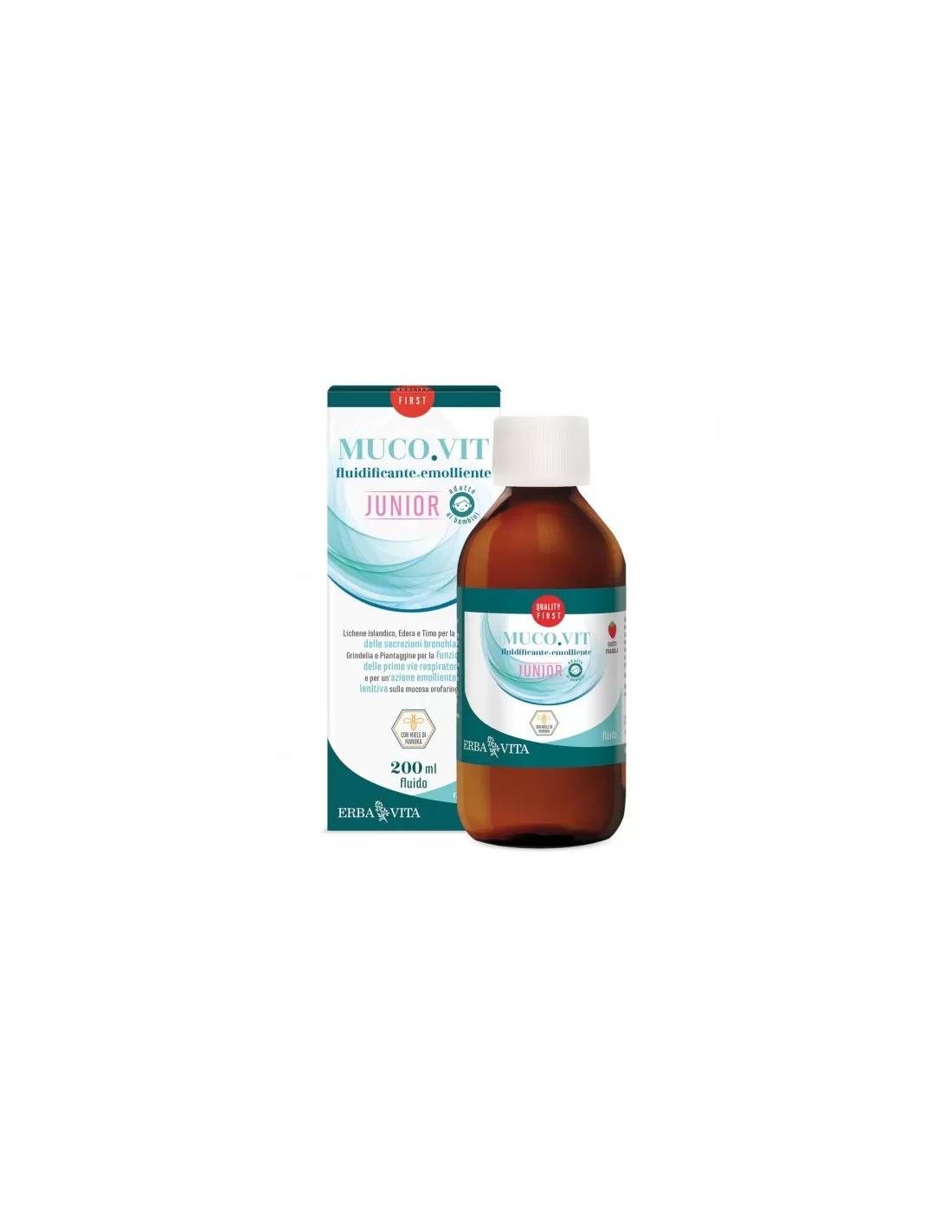 DescrizioneMuco.vit fluido junior è un integratore alimentare a base di estratti vegetali e miele di manuka. Gli estratti di lichene islandico, edera e timo favoriscono la fluidità delle secrezioni bronchiali, mentre gli estratti di grindelia e piantaggine sostengono la funzionalità delle prime vie respiratorie e, in sinergia con l’estratto di Lichene islandico, promuovono un’azione emolliente e lenitiva sulla mucosa orofaringea. Senza alcol ed aromatizzato al gusto fragola, è particolarmente indicato per i più piccoli.
