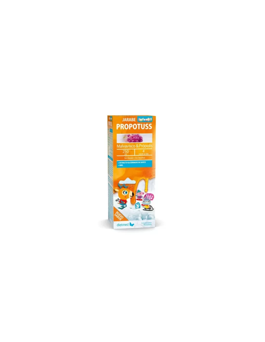 Ingredienti Acqua, sciroppo di agave, estratto di propoli, Althaea officinalis L. (altea, estratto glicerico di foglie e fiori), Sambucus nigra L. (sambuco, estratto glicerico di foglie e fiori), Malpighia glabra L. (acerola, estratto glicerico di frutto), acido L-ascorbico (vitamina C), gluconato di zinco, miele; conservante: sorbato di potassio; aroma di limone; correttore di acidità: acido citrico; olio essenziale di bacche di Eucalyptus globulus Labill. (eucalipto, foglie), colecalciferolo (vitamina D).