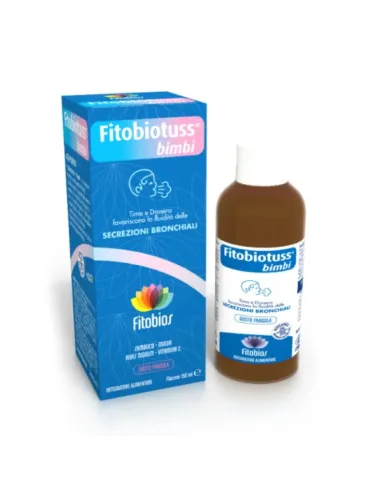 FITOBIOS SrlFitobiotuss Sciroppo a base di estratti vegetali e Vitamina C. Il Sambuco favorisce la funzionalità delle prime vie respiratorie e le naturali difese dell’organismo, il Timo e la Drosera favoriscono la fluidità delle secrezioni bronchiali, la Malva ha azione emolliente e lenitiva. Risulta particolarmente gradito al bambino per la presenza di fruttosio. Non contiene conservanti e zuccheri complessi.