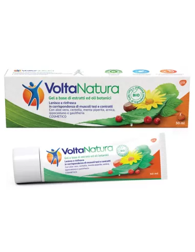VoltaNatura è un gel a base di estratti ed oli botanici. Con aloe vera, centella, menta piperita, arnica, ippocastano e gaultheria. VoltaNatura è un gel a base di estratti ed oli botanici che lenisce e rinfresca le aree cutanee interessate (come ad esempio collo e spalle, schiena e gambe) in corrispondenza di muscoli tesi e contratti.