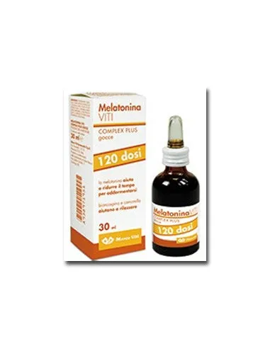 MARCO VITI FARMACEUTICI SpAMelatonina Viti Complex Plus è un integratore alimentare di melatonina che può risultare utile per ridurre il tempo necessario per prendere sonno, grazie anche alla presenza di biancospino e camomilla dalle proprietà rilassanti. Melatonina Viti Complex Plus gocce contiene vitamina B6 per favorire il normale funzionamento del sistema nervoso.