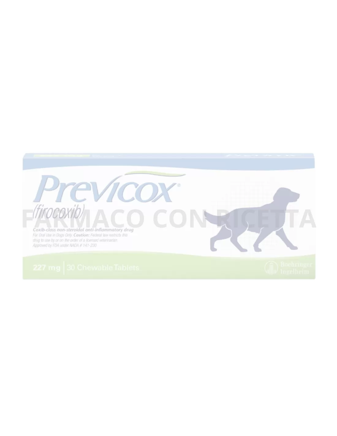Previcox 227 mg è un farmaco indicato per alleviare il dolore e l’infiammazione associati ad osteoartrite nel cane e per alleviare il dolore e l’infiammazione post-operatori associati alla chirurgia dei tessuti molli ed alla chirurgia ortopedica e dentale nel cane.