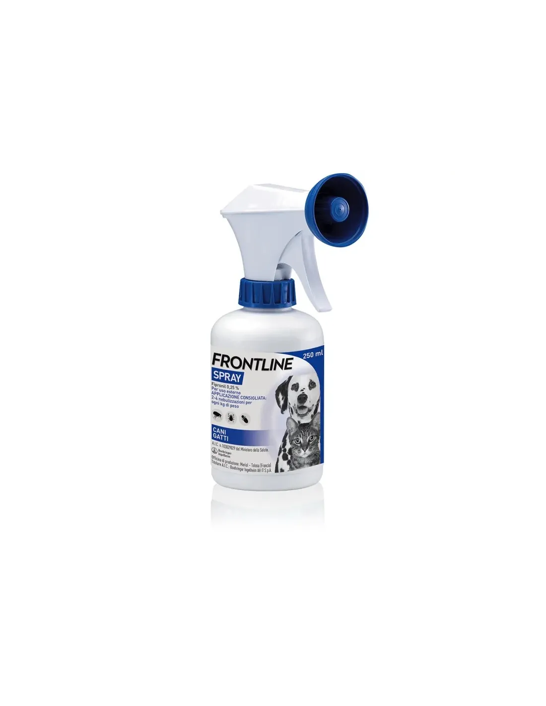 BOEHRINGER ING.ANIM.H.IT.SpAFrontline Spray è un antiparassitario per cani e gatti, applicabile a partire dai 2 giorni di vita.