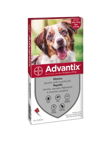 ADVANTIX SPOT-ON 10-25KG ROSSO 4 PIPETTE ANTIPARASSITARIE