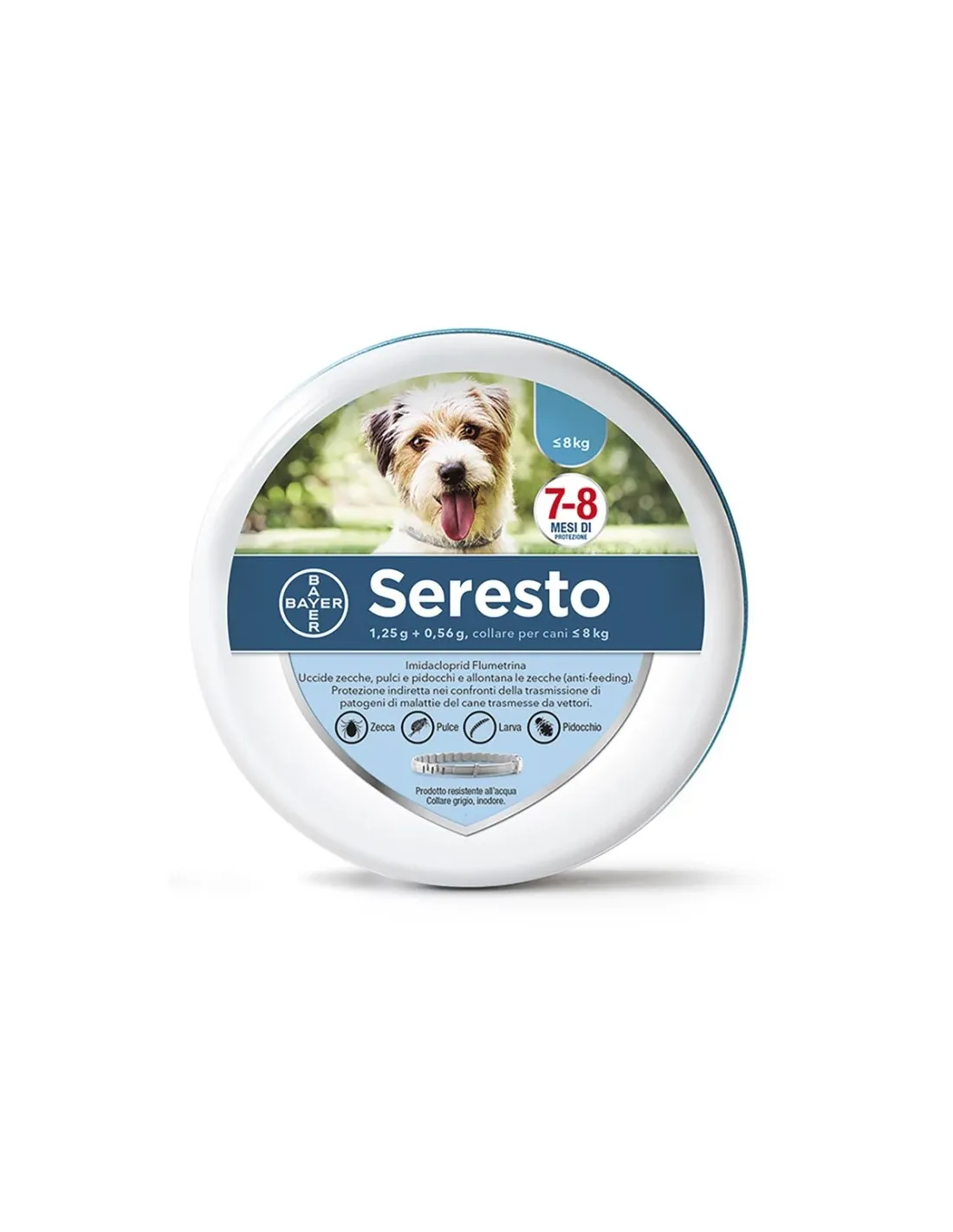 Seresto Collare Per Cani viene venduto in Confezione con un collare per cani fino a 8kg.