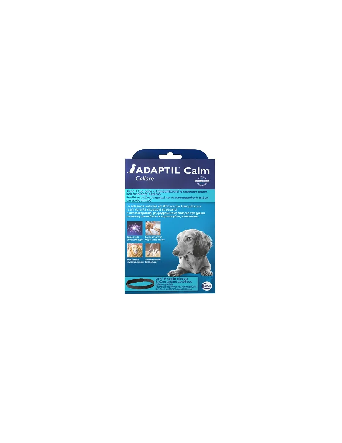 ADAPTIL Collare favorisce il benessere di cuccioli e cani adulti in situazioni che possono determinare paura ed apprensione. Il collare può essere usato sia all’esterno che all’interno della casa per: - Favorire la socializzazione (altri cani, persone, nuove situazioni); - Controllare la paura all'esterno (cani, estranei, traffico, temporali ed altri rumori forti); - Inserire il cane in un nuovo ambiente (casa nuova, canile, pensioni). L’utilizzo combinato di ADAPTIL collare e del ADAPTIL diffusore in casa, può aiutare ad ottenere risultati migliori in cani che manifestano segni di paura sia all’interno che all’esterno. Per usi particolari consultare il Medico Veterinario.
