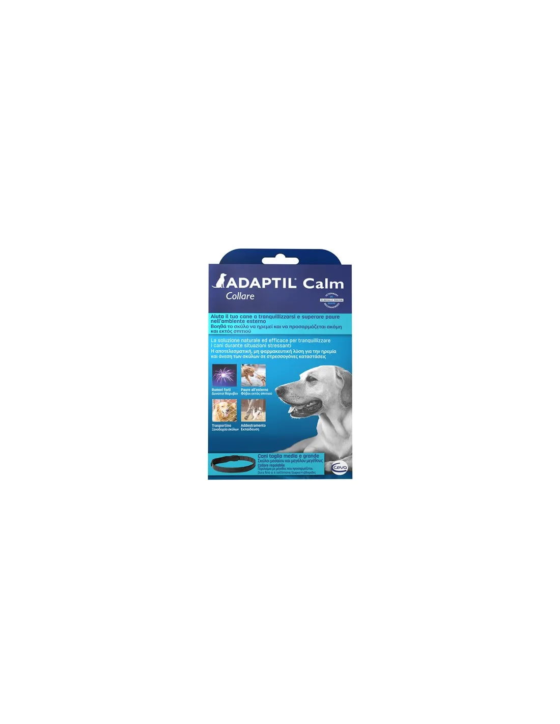 CEVA SALUTE ANIMALE SpAIl Collare ADAPTIL contiene D.A.P. (feromone appagante del cane) e previene e controlla lo stress nei cuccioli e nei cani adulti, aiutandoli ad affrontare situazioni quali: