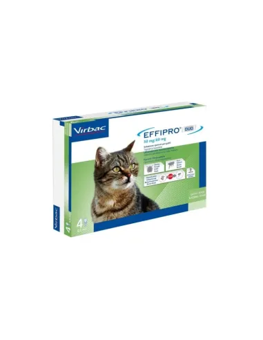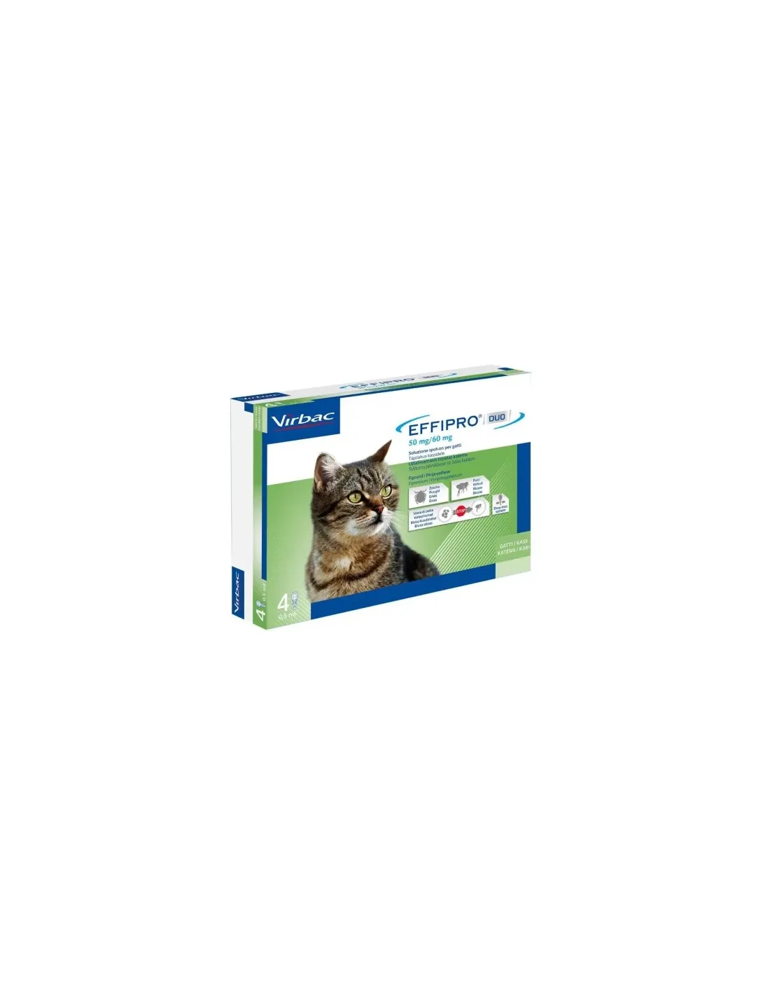 VIRBAC SrlEffipro Duo 50 mg / 60 mg è limpida, incolore a giallina da utilizzare contro infestazioni da soli o in associazione con le zecche pulci nei gatti.