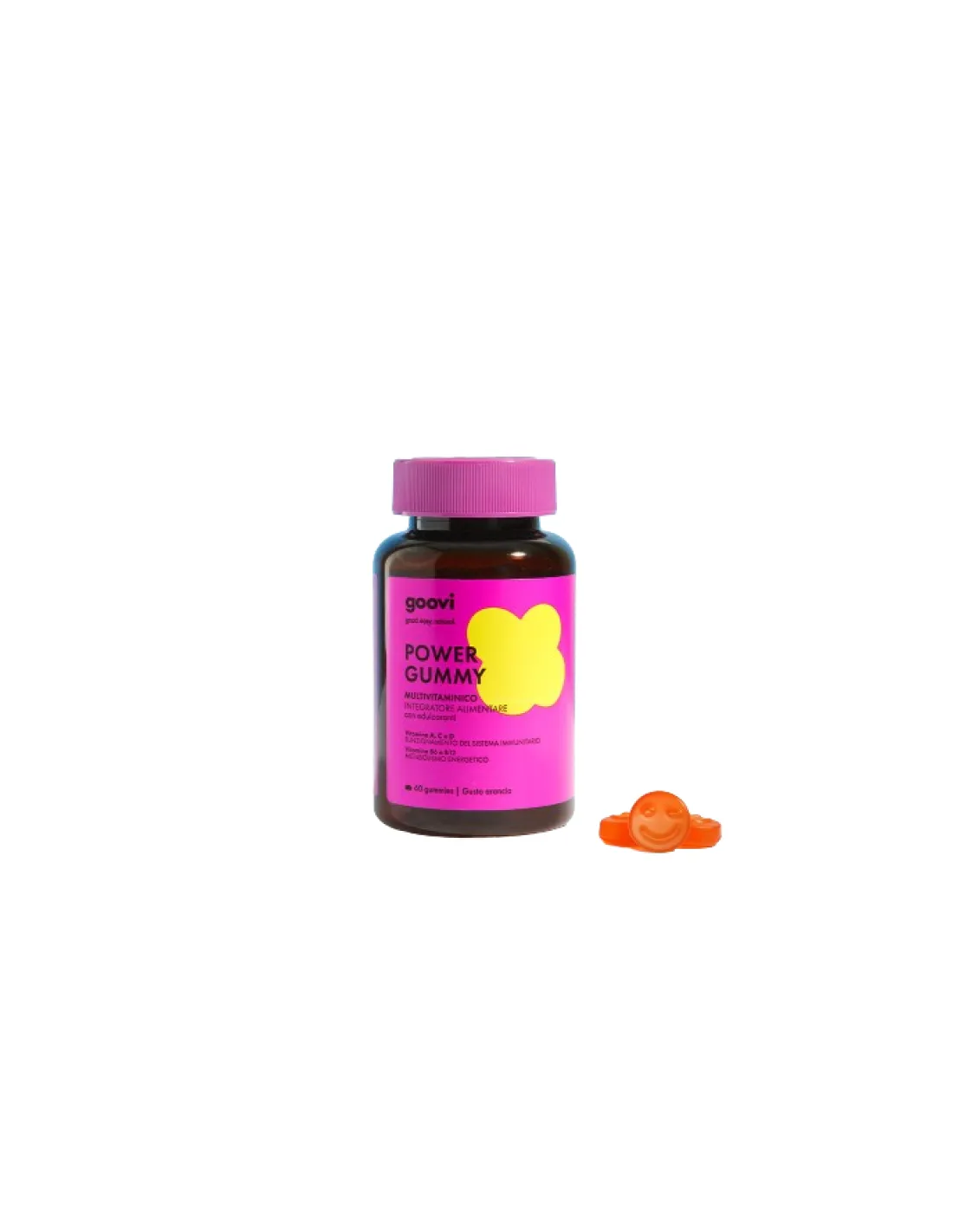 Le GOOVI POWER Gummies sono l'integratore alimentare Multivitaminico studiato per fornire un supporto completo all'organismo, ideale per chi cerca una sferzata di energia e il mantenimento delle funzioni immunitarie in modo pratico e gustoso. Dimentica le pillole: queste deliziose caramelle gommose gusto arancia-limone sono il modo più piacevole per prenderti cura della tua salute.