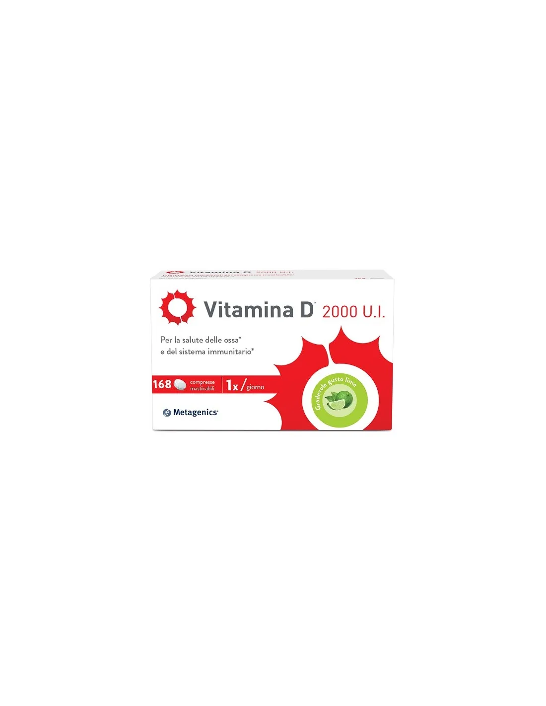 METAGENICS BELGIUM bvbaLa vitamina D 2000 U.I. Metagenics è una vitamina indispensabile per la nostra salute. Sostiene il sistema immunitario e contribuisce al mantenimento di ossa e denti forti. Per il Sistema Immunitario e la Salute delle Ossa.